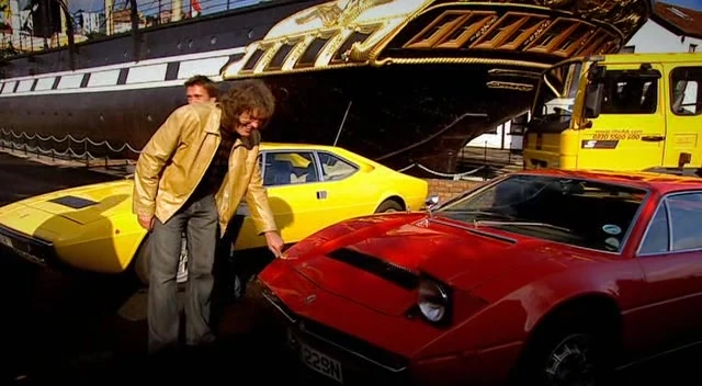 The presenters were told to meet up at the SS Great Britain in Bristol. Richard was first to arrive, driving a 1979 Ferrari 308 GT4 Dino, followed shortly after by Jeremy, with a 1974 Maserati Merak SS. Richard noted that he had paid the full £10,000 for his Ferrari, while Jeremy had only paid £7,000, despite the previous owner having spent £10,000 to restore the engine. After a while, the two began to wonder where James was, and were highly amused when he showed up with his car, a 1975 Lamborghini Urraco. which was on the back of an AA truck, having broken down due to an electrical problem.